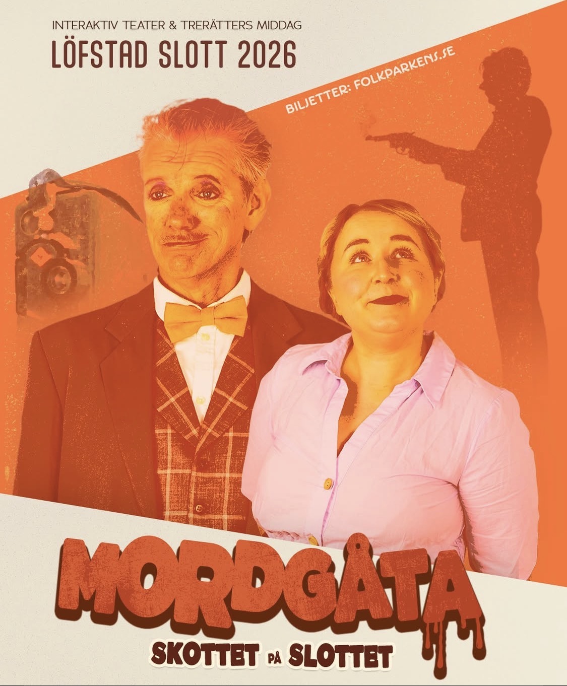 Under kvällen kommer ni att få avnjuta en trerätters-måltid och samtidigt få vandra runt på slottet och få bevittna olika scener - scener som kanske för er närmare en lösning i mordgåtan. Ni, våra gäster, varvar en trevlig middag med teater på olika platser runtomkring i slottet och flyglarna.